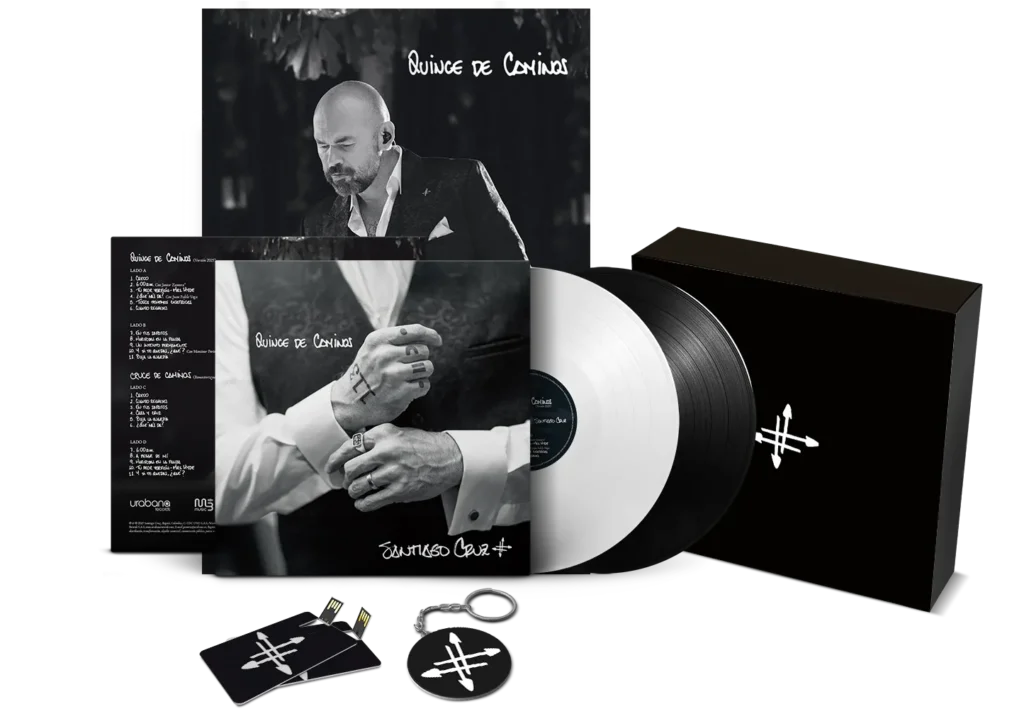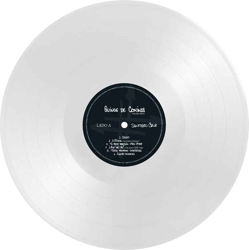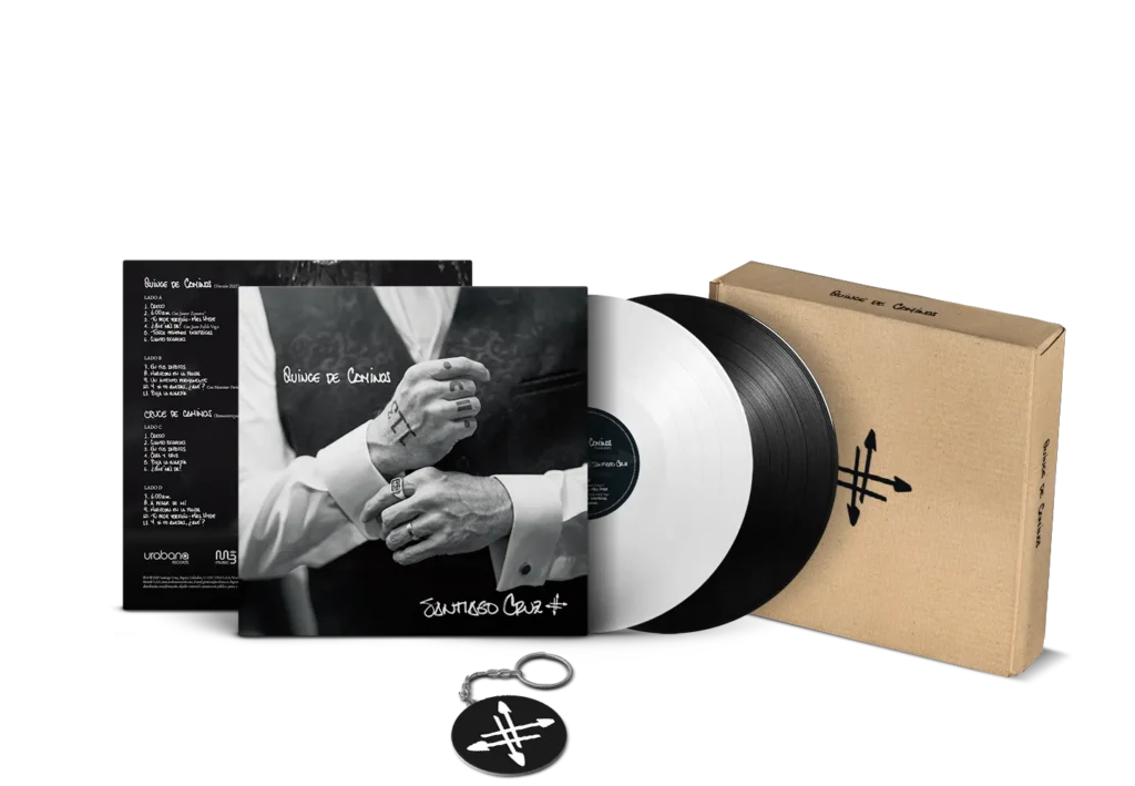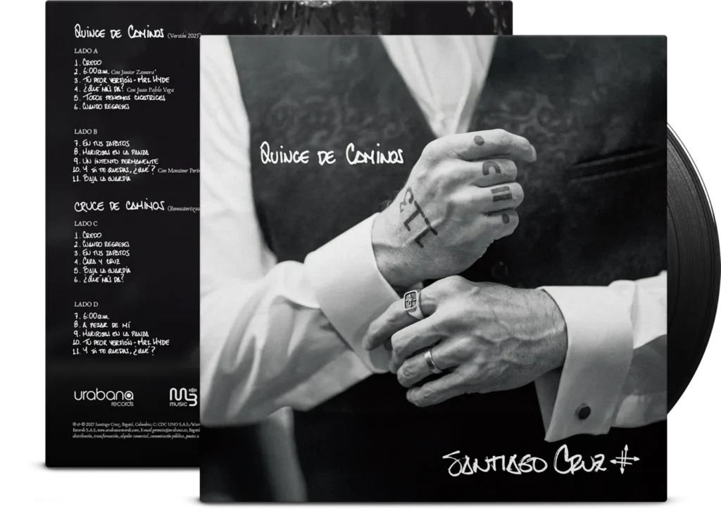 “Quince de Caminos” es la edición especial en vinilo con la que Santiago Cruz celebra los 15 años de Cruce de Caminos, el álbum que marcó un hito en su carrera y en el pop colombiano. En esta ocasión con una grabación en vivo, este lanzamiento revive sus canciones más queridas con una energía renovada y la complicidad de una audiencia íntima, acompañado por músicos de gran trayectoria como Juan Pablo Vega, Juan Galeano, Daniel Álvarez (Diamante Eléctrico) y Daniel Duplat, además de las versiones originales remasterizadas 2025. Este vinilo es una pieza de colección imprescindible para fans y amantes de la música latina.